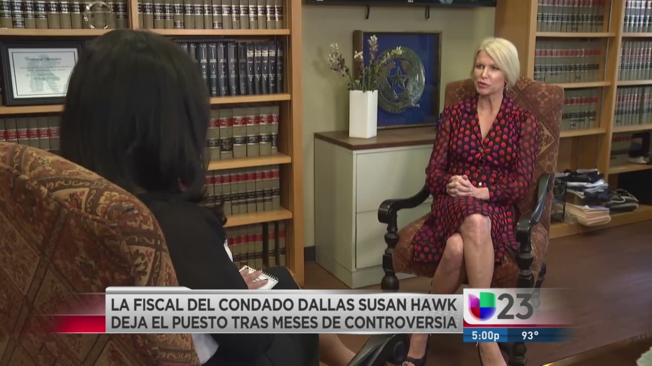 DALLAS, Texas - Finalmente, tras dos largos periodos de ausencia en los dos últimos años, especulaciones, rumores y peticiones de que dejara el puesto, Susan Hawk renunció esta tarde a su cargosde Fiscal de Distrito.