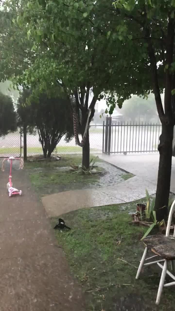 Adriana Sotelo compartió este video que muestra las fuertes lluvias que se registraron en Oak Cliff durante la mañana del sábado 6 de abril de 2019.