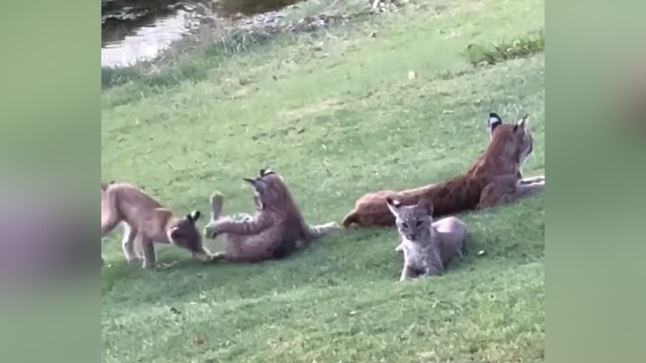 Extraño avistamiento: Gatos monteses son captados jugando en un campo de golf en Plano, Texas