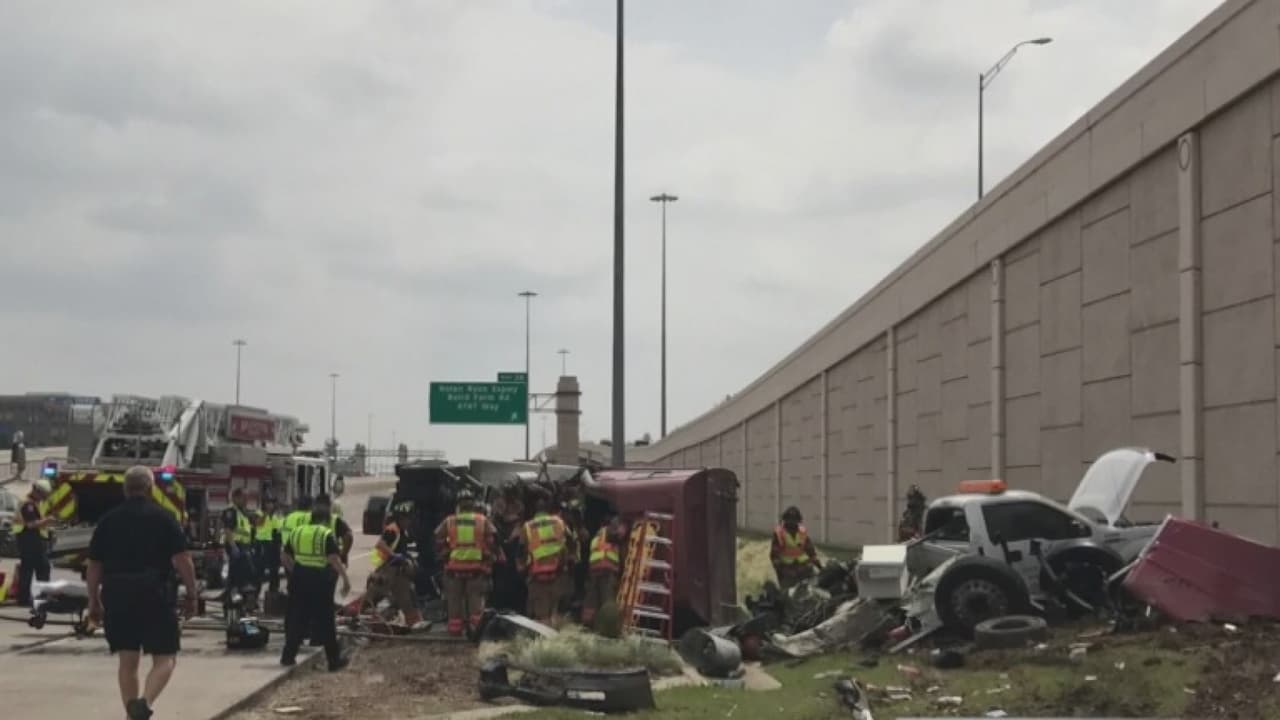 Grave accidente vehicular provocó el cierre de la autopista I-30 cerca de la calle Collins