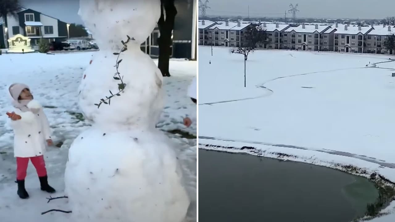 Una fuerte tormenta invernal azotó a Texas este jueves. En Lewisville inició con una lluvia helada, pero ahora la ciudad está cubierta de nieve. Muchas personas se quedaron en casa resguardándose del frío, mientras que otros disfrutaban por primera vez este fenómeno, incluso salieron a jugar y hacer muñecos de nieve. Así vivieron la nevada.
