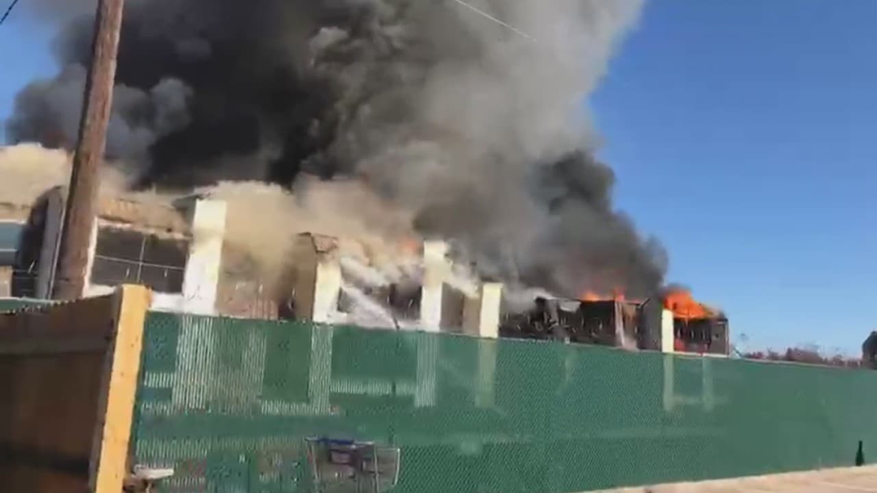 Bomberos de Dallas trabajan para contener incendio en un complejo de apartamentos