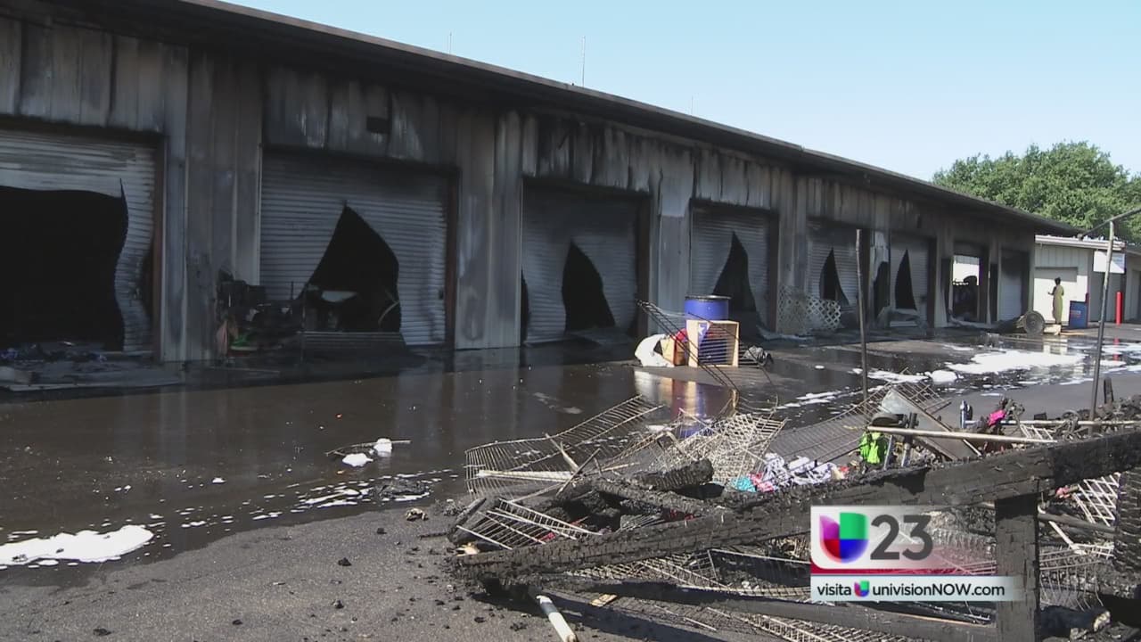 Bomberos investigan qué ocasionó el siniestro que destruyó varios locales comerciales.