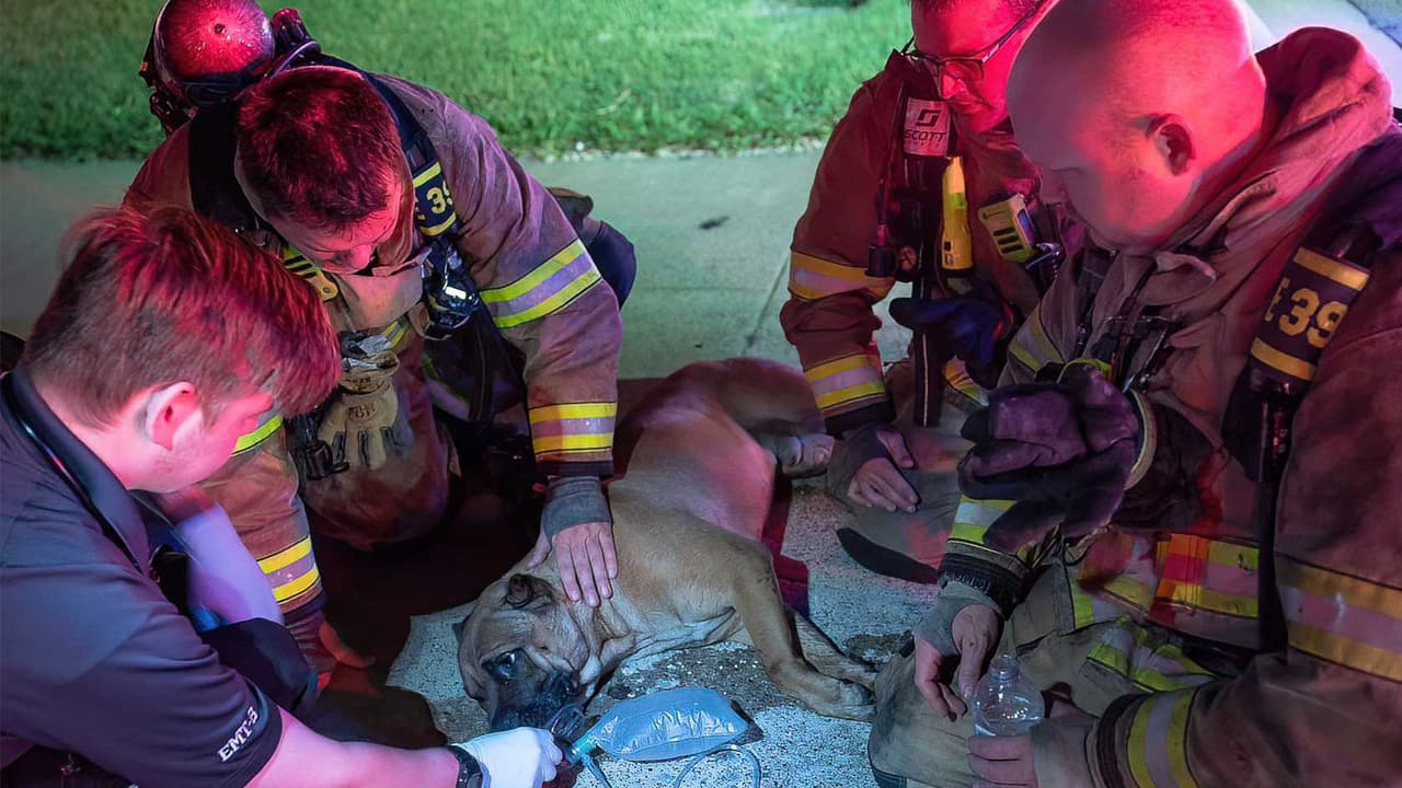 Bomberos reviven a Slime, perro que quedó inconsciente tras un incendio