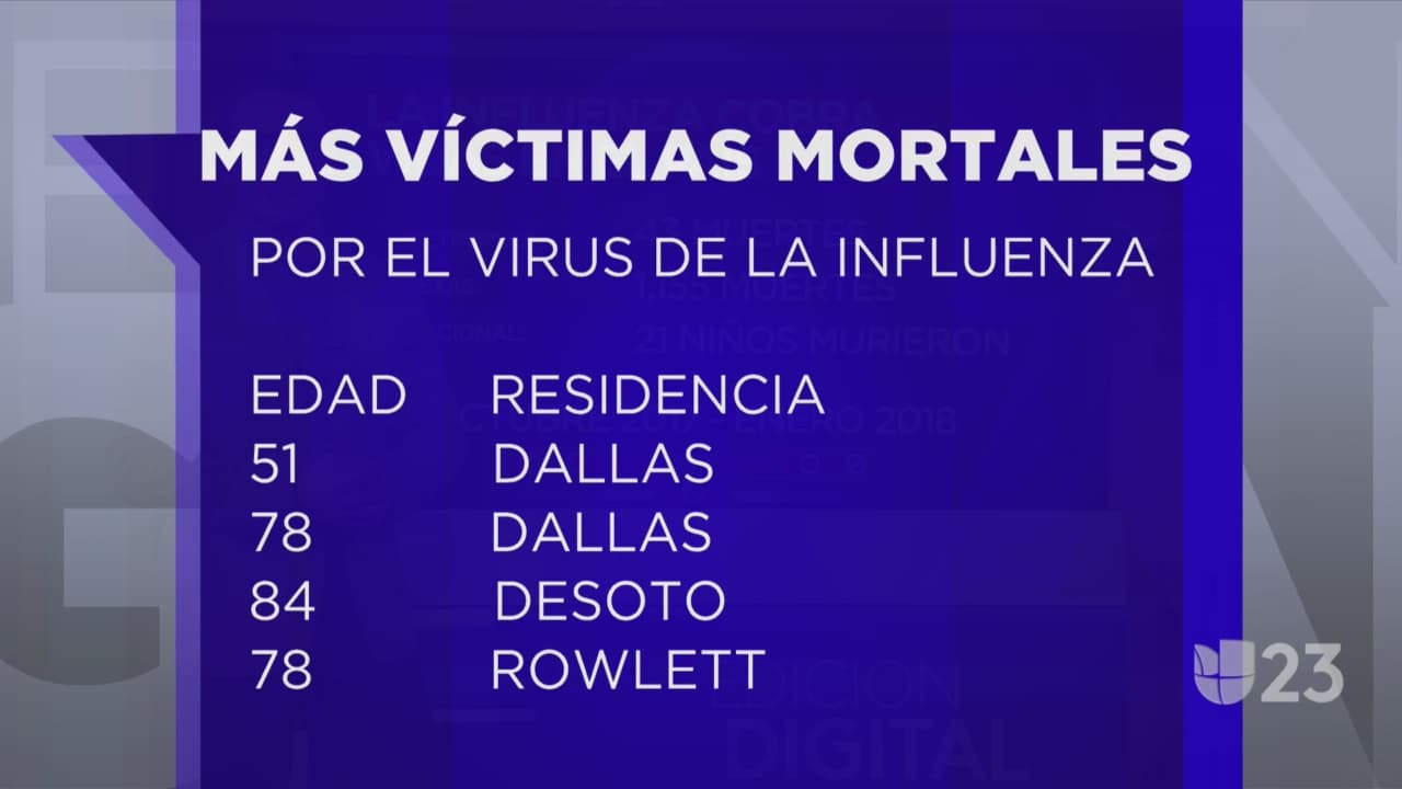 Autoridades del condado Dallas reportaron otras siete muertes por el virus de la influenza, elevando la cifra a 38 en esta jurisdicción, las víctimas tenían entre 51 y 89 años de edad.