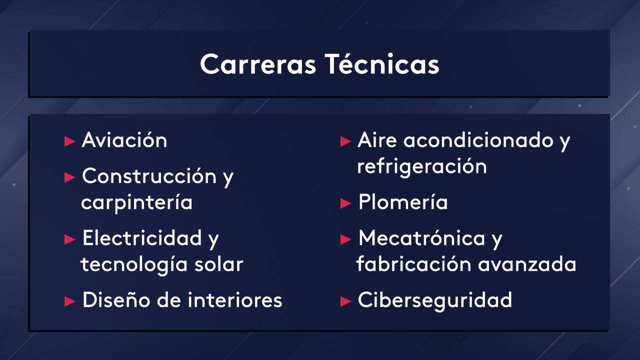Los alumnos pueden escoger entre ocho carreras que incluyen construcción, plomería, aviación y diseño de interiores.