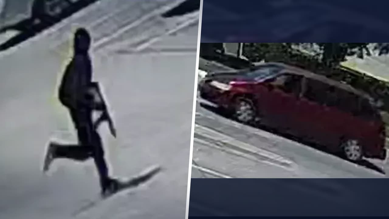 Un testigo vio al hombre armado subirse a una minivan y huir de la escena. Las imágenes de ambos fueron capturadas en un video de vigilancia granulado.
