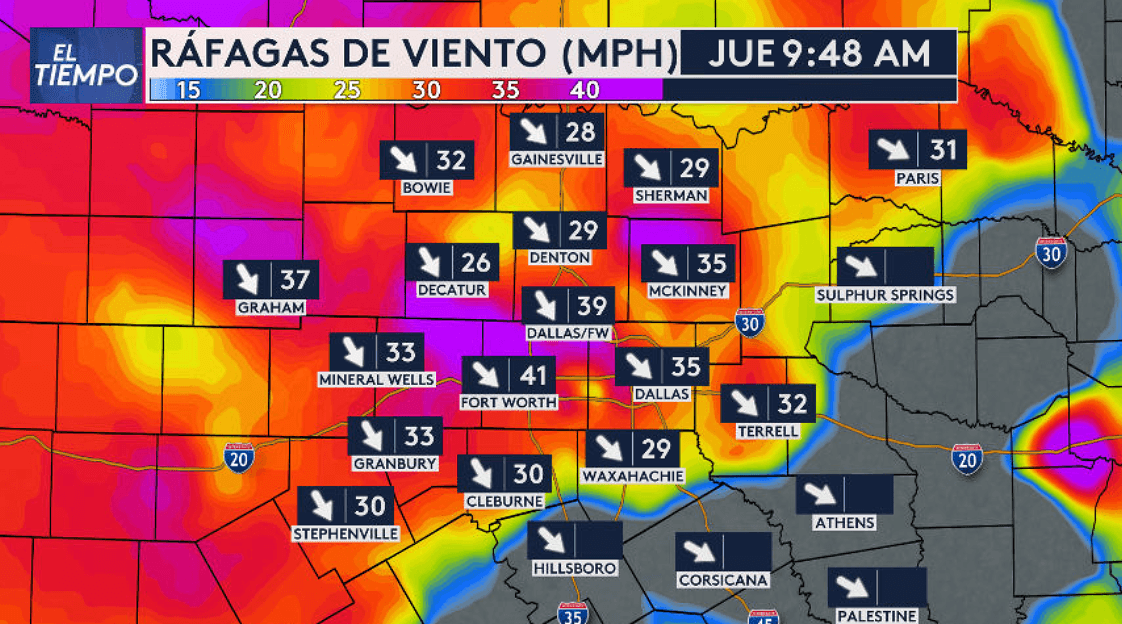 Ya recibimos aire más frío y ventoso en el Metroplex tras el paso de un frente frío. Las ráfagas de viento se reportan cerca de las 40 mph en Dallas Fort Worth y el viento combinado con el aire frío nos está dejando con sensación térmica muy baja.
