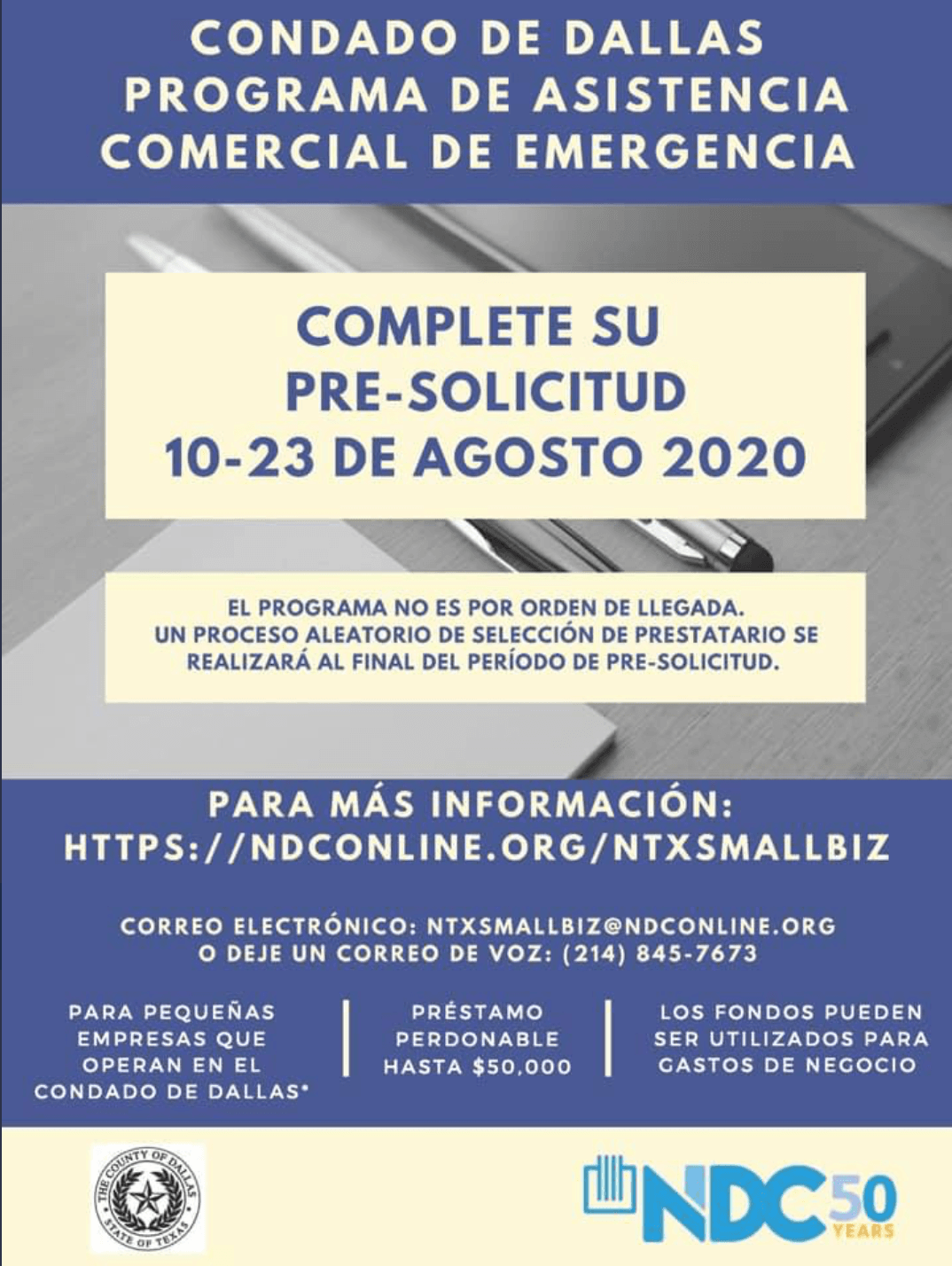 Los dueños de negocios que operan en la ciudad de Dallas no son elegibles para esta ayuda. Los fondos pueden ser utilizados para gastos del negocio. Para llenar su aplicación visite https://www.surveymonkey.com/r/ebap3.
