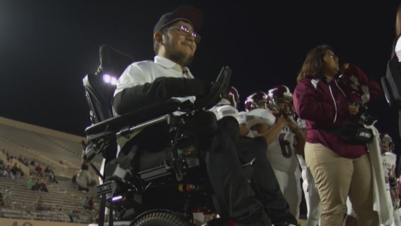 La distrofia muscular no lo venció y ahora es el aguatero del equipo de fútbol americano de su preparatoria