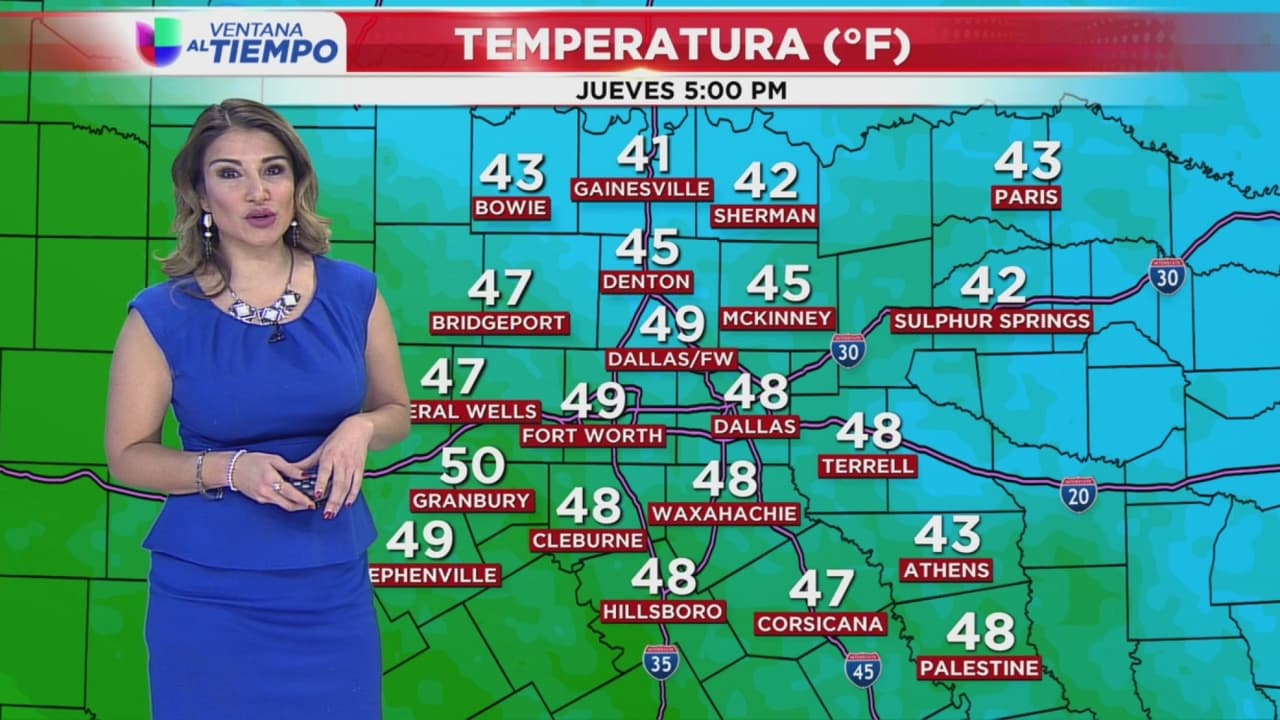Nuestra meteoróloga Nelly Carreño presenta el pronóstico del tiempo para Dallas y sus alrededores. Se espera que las nubes se alejen en el transcurso de las siguientes horas y una noche fría.