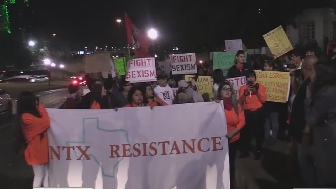 Con pancartas reclamaban por las comentarios racistas y sexistas del nuevo presidente, además de su cuestionable opinión sobre el cambio climático. En una menor cantidad, partidarios del republicano intentaron contrarrestar las manifestaciones.