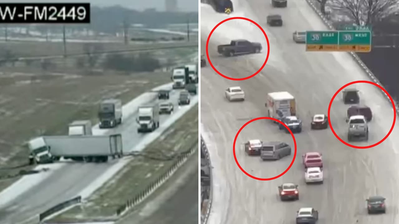 La caída de llovizna gélida en el norte de Texas provocó que calles y autopistas se cubrieran de hielo negro. Se han reportado cientos de accidentes y autos que quedan atrapados en las calles del Metroplex de Dallas - Fort Worth. Aquí te compartimos varios videos de autos y camiones resbalando por las autopistas.
