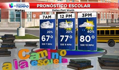 Monitoreamos la posibilidad que se forme una línea de fuertes tormentas durante la madrugada del martes en el Panhandle de Texas. Esta línea pasaría, posiblemente, sobre el norte de Texas entre las 7 de la mañana hasta las 12 del medio día. El peligro principal serían los fuertes vientos de hasta 65 mph, la posibilidad de granizo e inundaciones repentinas. Aunque el riesgo de tornado será mínimo, no se puede descartar.
