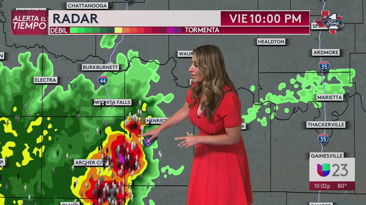 Las tormentas se mueven “como una tortuga” y no llegarán al Metroplex hasta la madrugada, entre la 1 y 2 am. Estas tormentas por ahora no son severas, entonces no se espera que traigan granizo grande o rotación que pueda generar tornados, informa Nelly Carreño, meteoróloga de Univision Dallas.