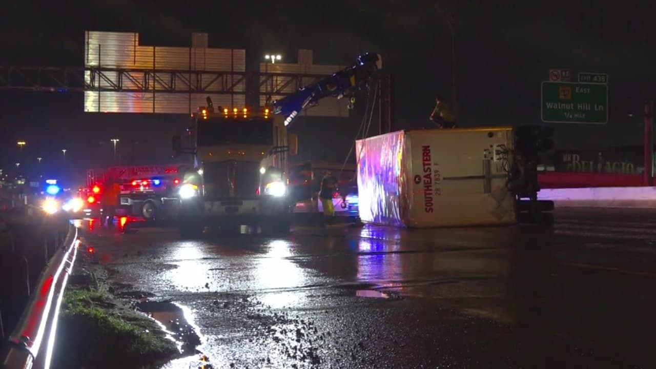 A las 2:15 am también se reportó varios autos varados y un camión de 18 ruedas que volcó en la autopista I-35 y el Loop 12 en Harry Hines. No se reportaron heridos en estos incidentes y el tráfico fue desviado causando algunos estragos.