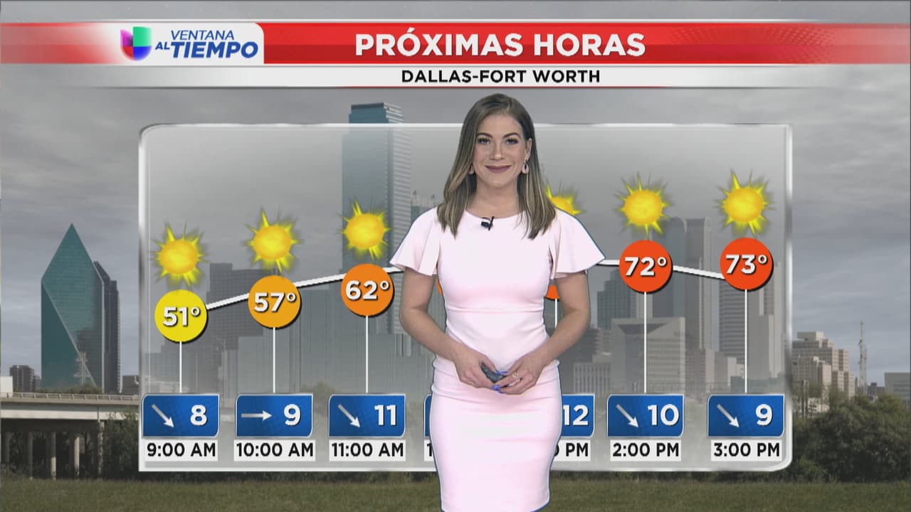 Las temperaturas máximas en el Metroplex estarán en los 74 grados Fahrenheit y las mínimas en los 44 grados. A partir del sábado, se esperan aguaceros en la mañana y tormentas durante la tarde.