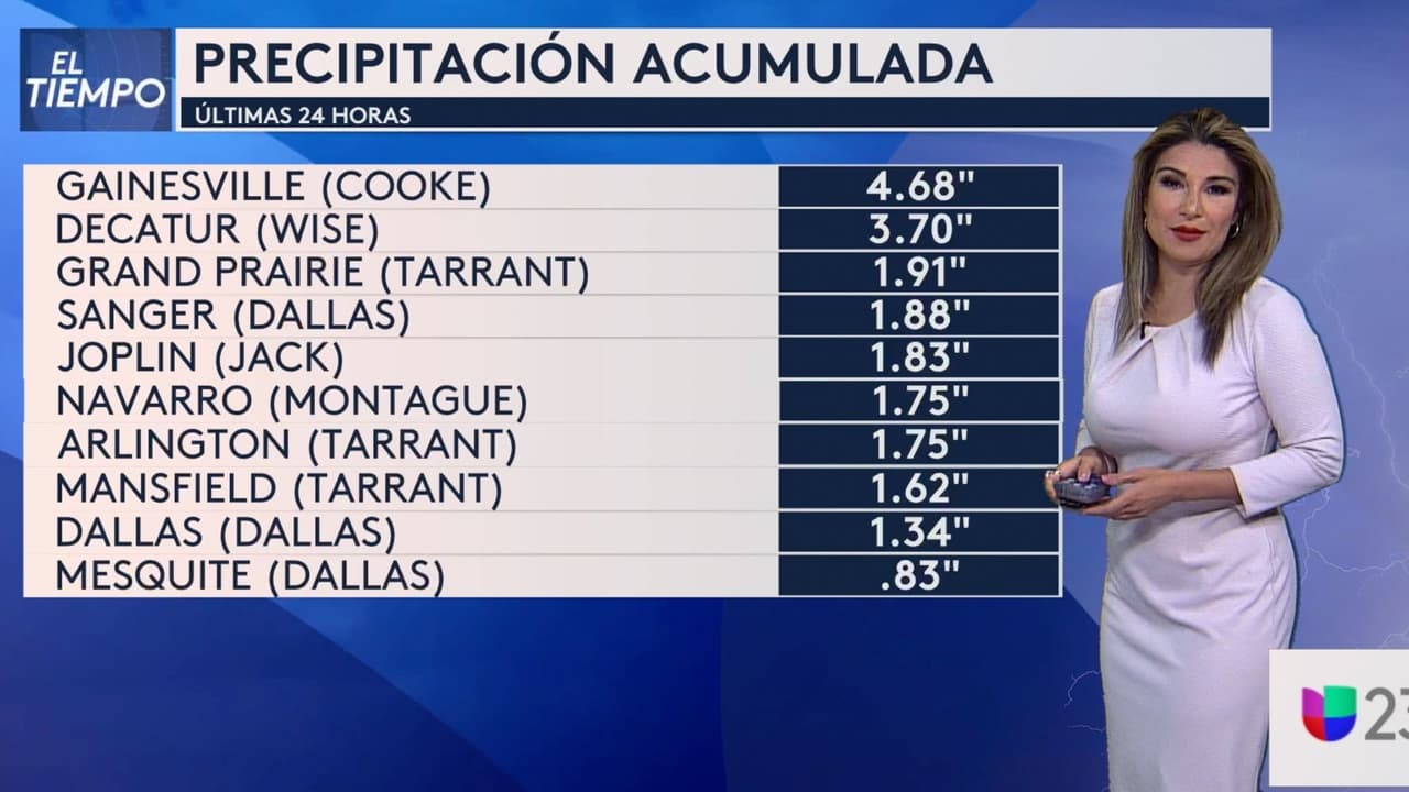 Los acumulados de lluvia, tras las tormentas del fin de semana, dan un alivio al Metroplex, tras la intensa sequía, nos lo explica Nelly Carreño. Tras el paso de este frente "frío" que trajo tormentas, las temperaturas bajaron y se esperan mañanas muy frescas para ser finales de abril.