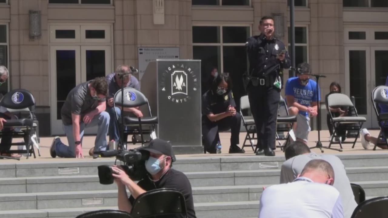 Los Dallas Mavericks realizan evento en contra del racismo a las afueras del American Airlines Center