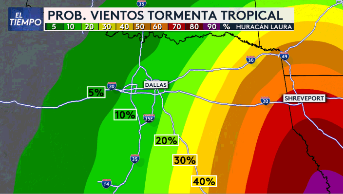 Residentes de Dallas-Fort Worth no deben alarmarse hasta el momento, pero si mantenerse al tanto de las condiciones del tiempo. Porque si Laura dirige su trayectoria un poco más al oeste, entonces lo impactos serían más significativos.