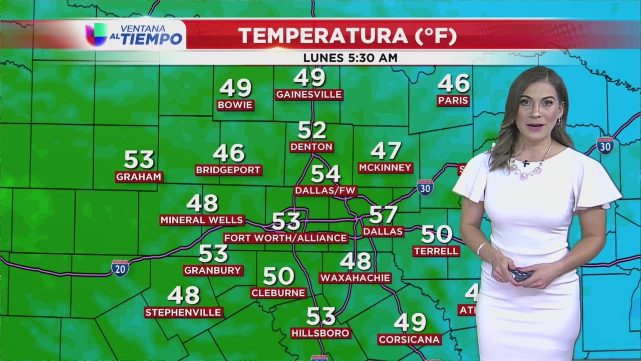 Temperaturas algo frías durante la mañana en el Metroplex con temperaturas en el marco de los 50 grados. Vientos algo intensos en la tarde con ráfagas sostenidas entre 20 y 25 millas por hora.