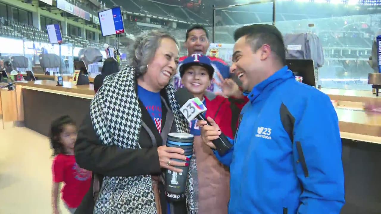 Aficionados hispanos de los Texas Rangers fueron al Globe Life Field a disfrutar del quinto partido y campeonato del equipo de Arlington. "Mañana no voy a ir a trabajar", dijo una aficionada, quien aseguró el partido la tuvo de nervios.