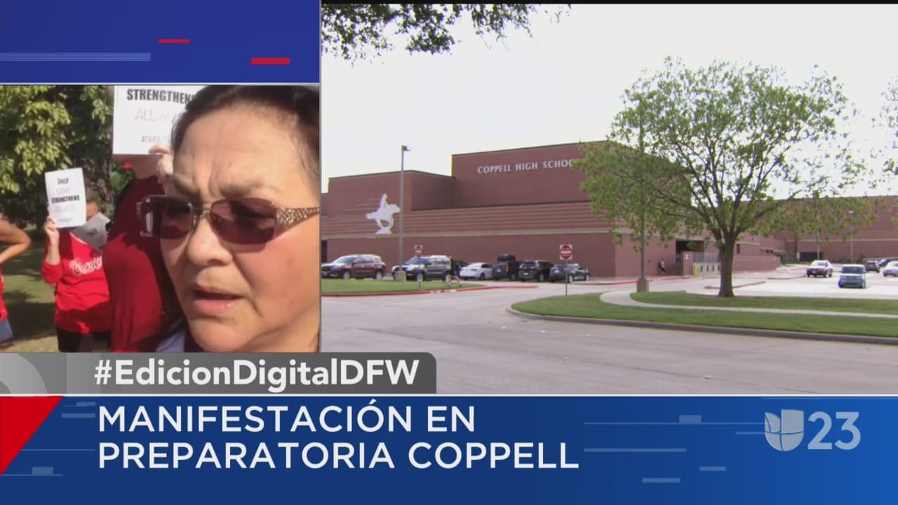 Manifestantes exigen justicia en el caso de acoso sexual a un alumno en la preparatoria Coppell