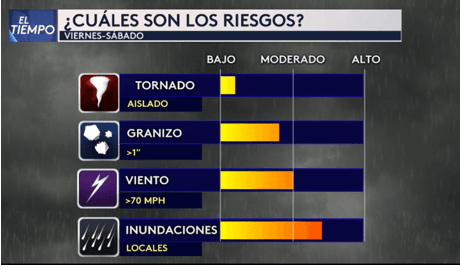 Durante el sábado, aumenta el peligro por inundaciones repentinas.