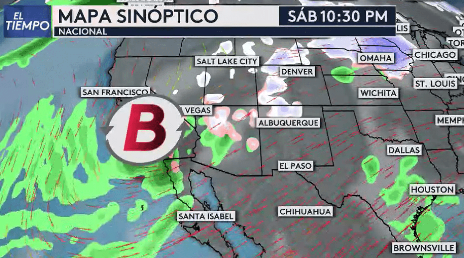 El primer sistema llega mañana y se encuentra en Baja California. Esta Baja Presión está separada de la corriente en chorro principal lo cual favorece la llegada continua de bandas de nubes al Metroplex en las próximas 24 a 48 horas. El sistema estará acompañando de la posibilidad de lluvias y aguaceros intermitentes. Especialmente desde la tarde de jueves a la madrugada del viernes.