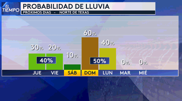 Lluvias ocasionales y cielos nublados serán la constante los próximos días en el norte de Texas. Todo debido a dos sistemas de Baja Presión en aire superior que favorecerán el suministro de humedad en niveles medios de la atmósfera y humedad que llega desde el Golfo de México y el Océano Pacífico.