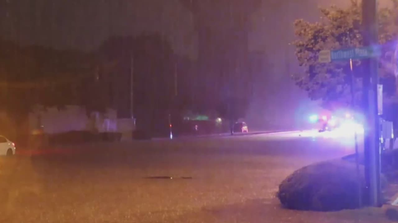 Una mujer tuvo que ser cargada por los bomberos hasta un lugar seguro, luego de que su vehículo quedara varado en medio de las acumulaciones de agua, en las intersecciones de Northwest Highway y Hillcrest Road, en la ciudad de Dallas. Entretanto, otros conductores, que también transitaban por el área, tuvieron que empujar sus automóviles.