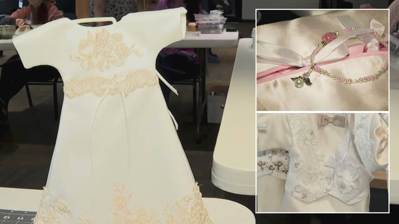 Mujeres de la organización Angel Gowns for Texas transforman vestidos de novia donados en ropita para bebés fallecidos