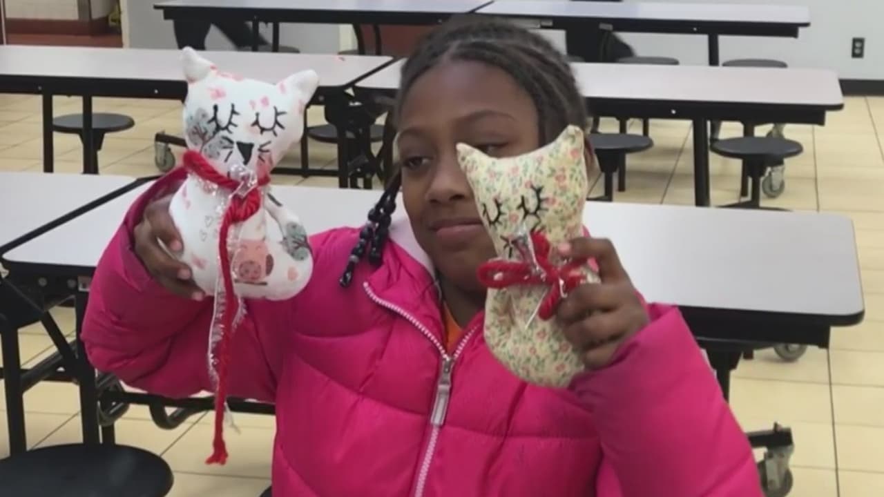 Niña de 9 años alegra con gatos de peluche, creados por ella misma, a menores en un refugio de Fort Worth