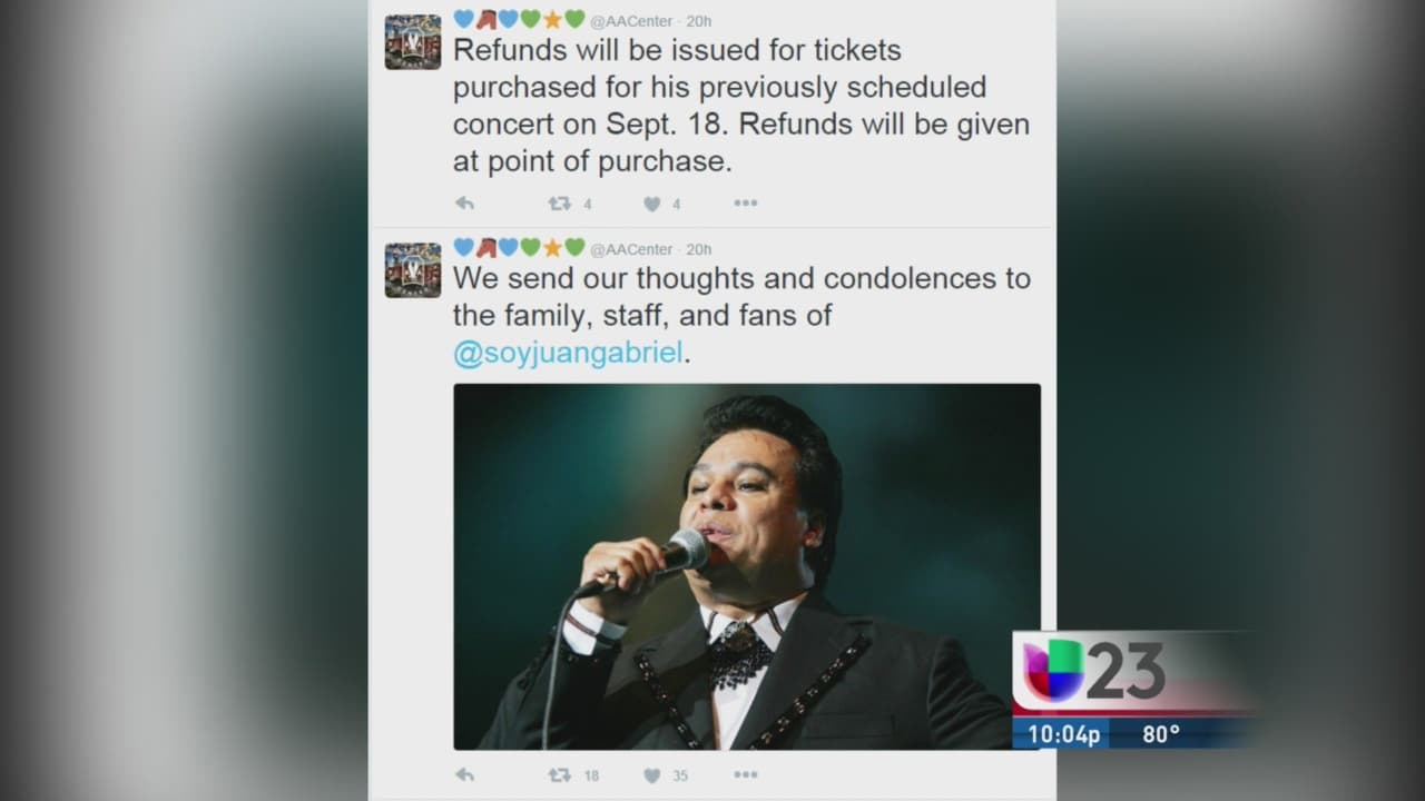Obtenga el reembolso de sus boletos para el concierto de Juan Gabriel