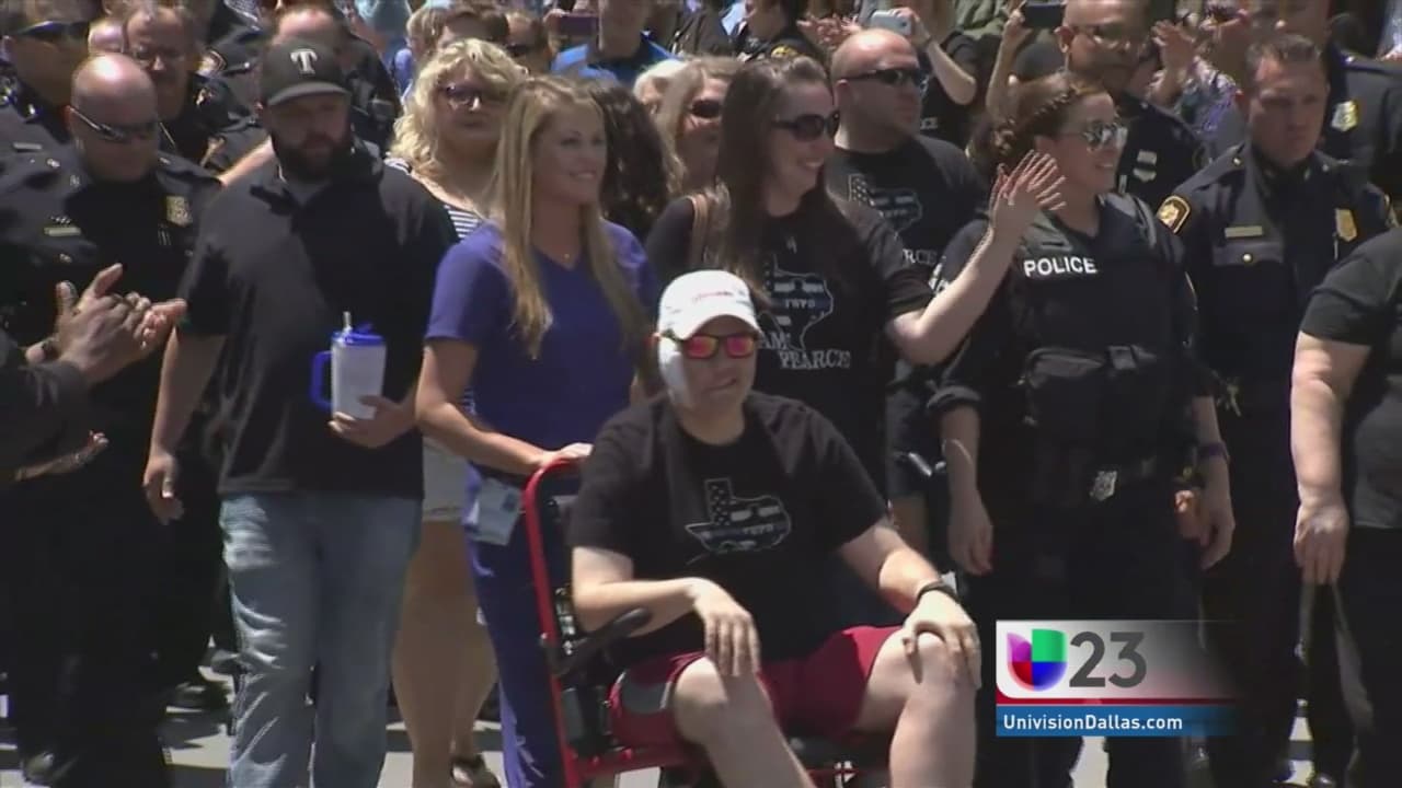 Y fue despedido y recibido por decenas de sus compañeros y personal del hospital. El oficial recibió siete balazos y sobrevivió
