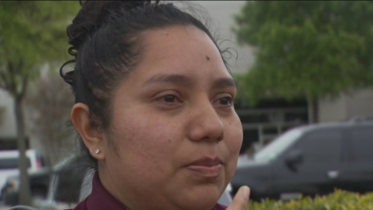 La mujer, visiblemente afectada, tenía una pulsera provista por ICE para identificar a los empleados que no serían arrestados.