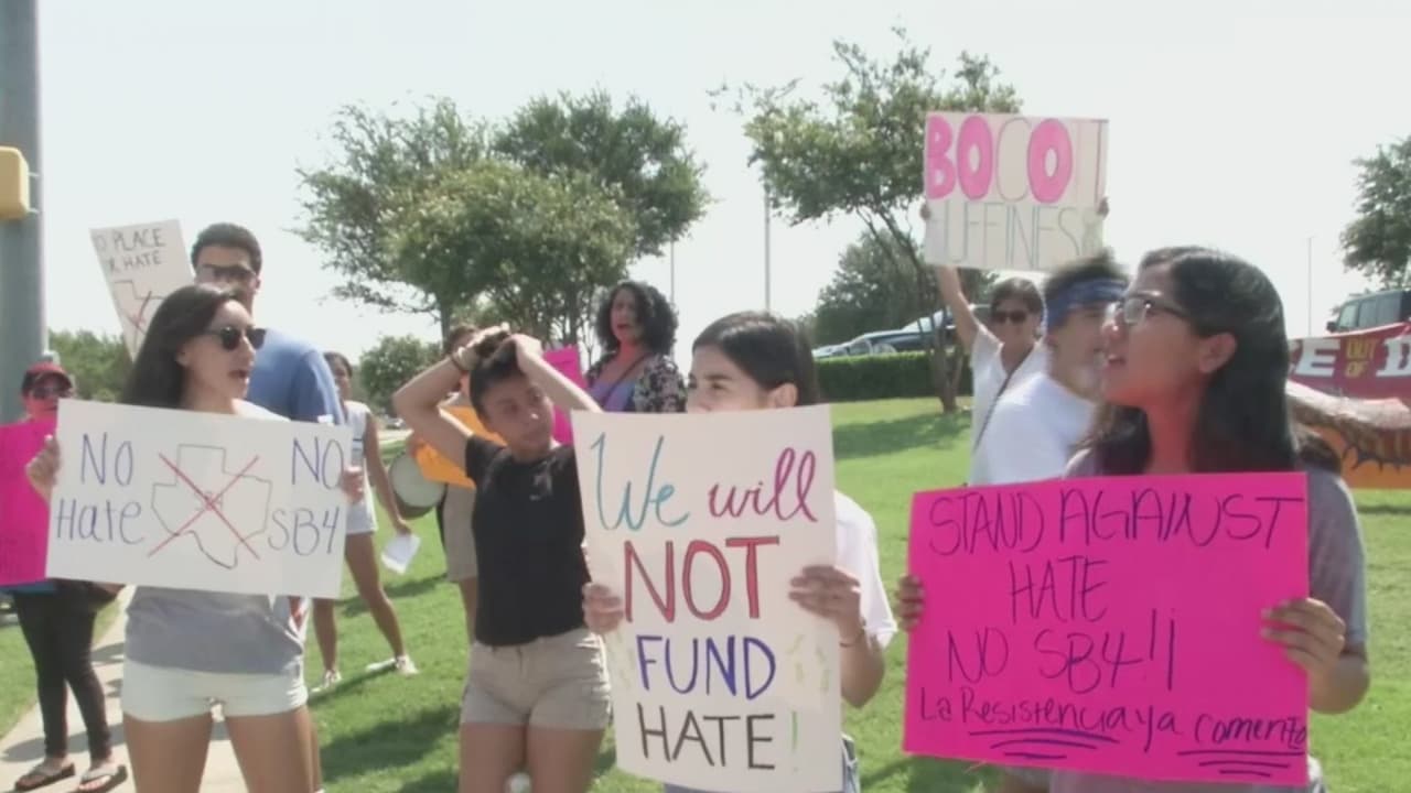 Organizaciones proinmigrantes protestan contra el senador Don Huffines, coautor de la polémica Ley SB4