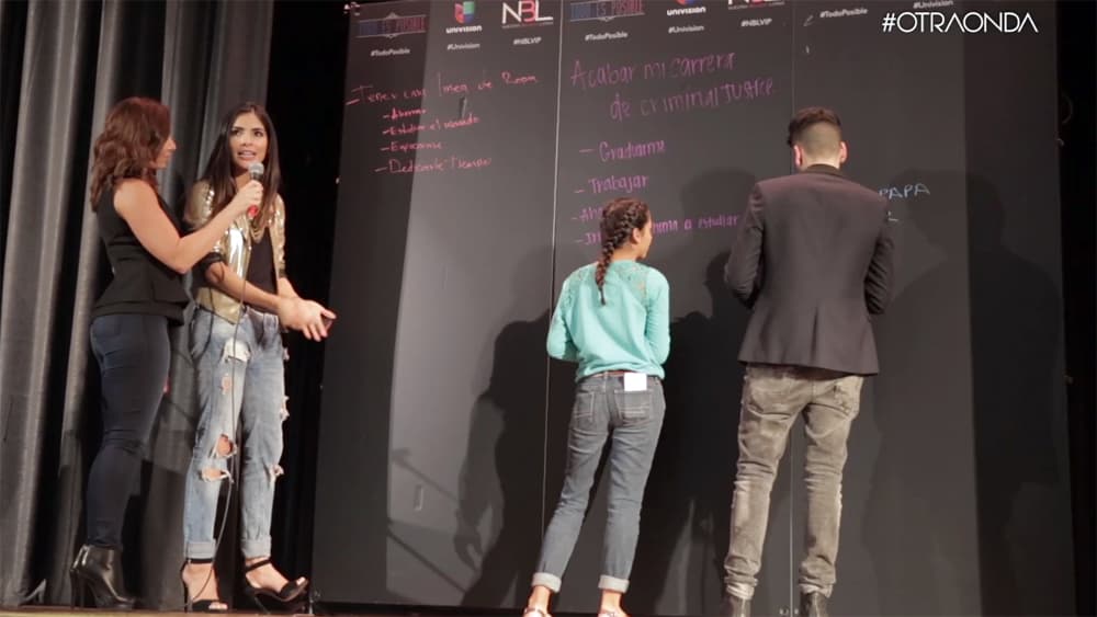 Alejandra Espinoza, Jomari Goyso y la -life coach- Laura Posada estuvieron en una escuela en Fort Worth para motivar a los jóvenes a trazar una meta en sus vidas.