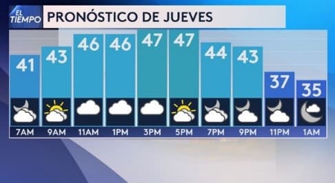 Jueves será el día más frío de la semana, con temperaturas de hasta 15 grados por debajo de lo normal. Abundante nubosidad impedirá que las temperaturas aumenten durante el día. Se pronostica una máxima entre 46-50 grados para el Metroplex.