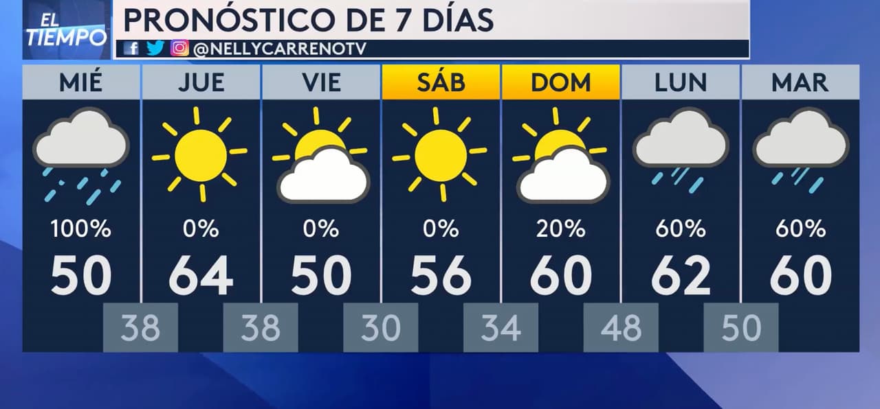 Actualización: Hay advertencia por inundaciones, hasta las 10 pm para los condados de: Ellis, Henderson, Kaufman y Navarro. Se ha formado un tren de tormentas que están pasando sobre esas zonas. El paso de un frente frío generó lluvias en el norte de Texas, y así se mantendrá la noche de este martes y el miércoles hasta el mediodía, así nos comenta nuestra meteoróloga Nelly Carreño, se esperan tormentas, pero no tiempo severo. Desde el jueves y hasta el domingo nos esperan condiciones secas, resalta Nelly. Infórmate y comparte.