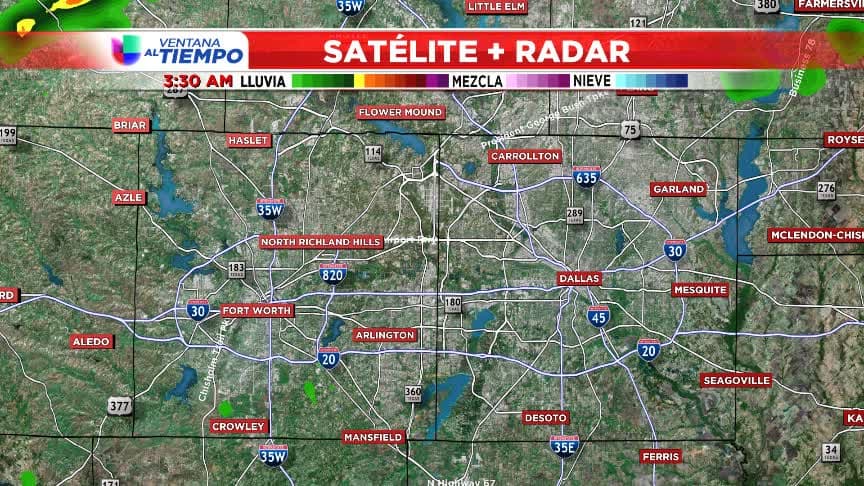 Mapa de las condiciones del Tiempo en la mañana ante el paso de las tormentas por el Metroplex.