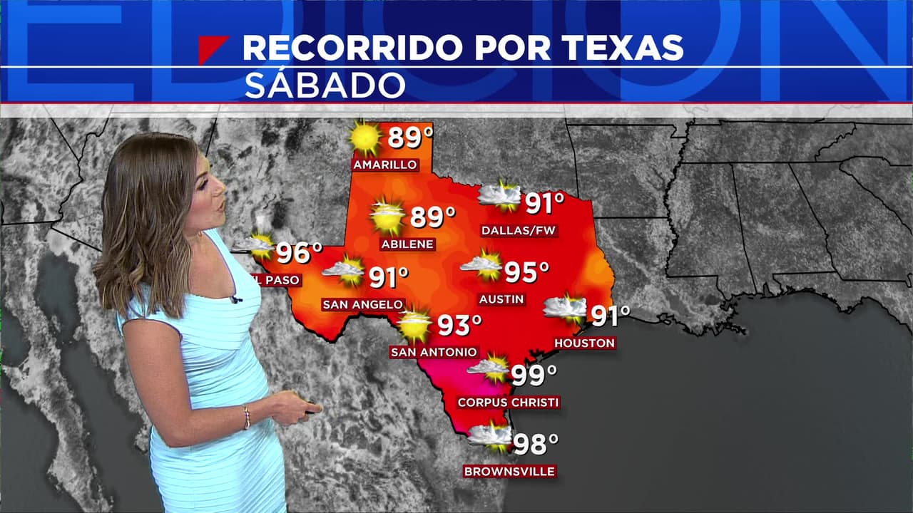 Fin de semana cálido a lo largo del estado, ciudades costeras y al este recibirán lluvias asociadas a la Tormenta Tropical Barry. Cuidado si tiene planes de viajar a Houston, donde estará recibiendo posibles acumulados entre1”-3”, asociadas a las bandas de lluvia de Barry. Centro y norte de Texas se mantendrá condiciones mayormente secas.