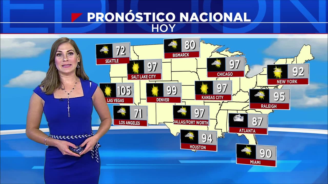 Peligrosa ola de calor afecta alrededor de dos tercios del oriente del país. Sigas las medidas de seguridad para evitar afectaciones por calor extremo, si viaja a esta parte de país. Además, verifique su boleto de vuelo si tiene planes de viajar a Wisconsin, Minnesota, Michigan e Illinois porque ellos tienen riesgo de tiempo severo. Tormentas con el potencial de producir granizos, fuertes ráfagas de vientos y tornados aislados.