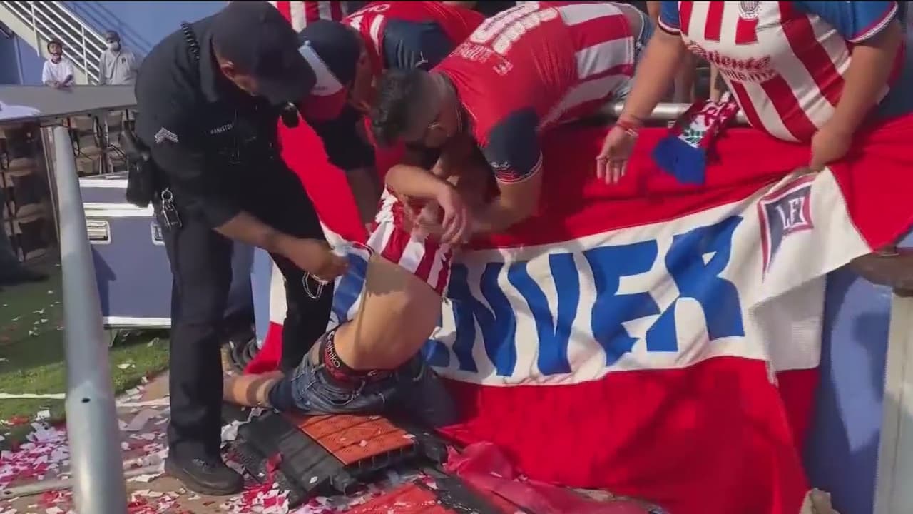 El altercado, que fue grabado por un fotoperiodista de Noticias Univision 23, ocurrió el pasado domingo durante el duelo entre los equipos del América y Chivas en el estadio Cotton Bowl de Dallas. Las imágenes muestran el momento exacto en el que, en medio de una disputa, un aficionado recibe un golpe en el rostro por parte de un oficial y queda inconsciente por varios segundos. Esto respondieron las autoridades al respecto.