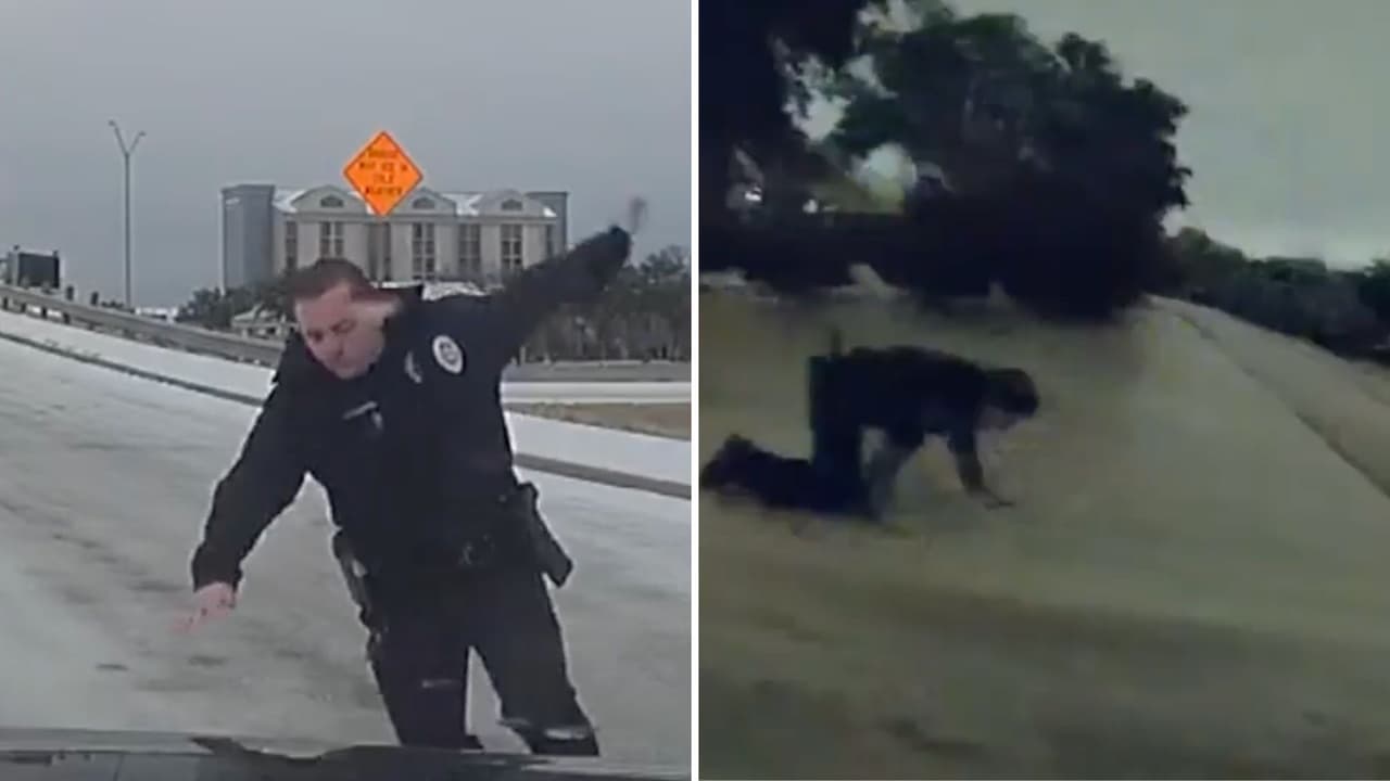 Policías de Irving, Texas comparten videos de sus caídas en esta tormenta invernal