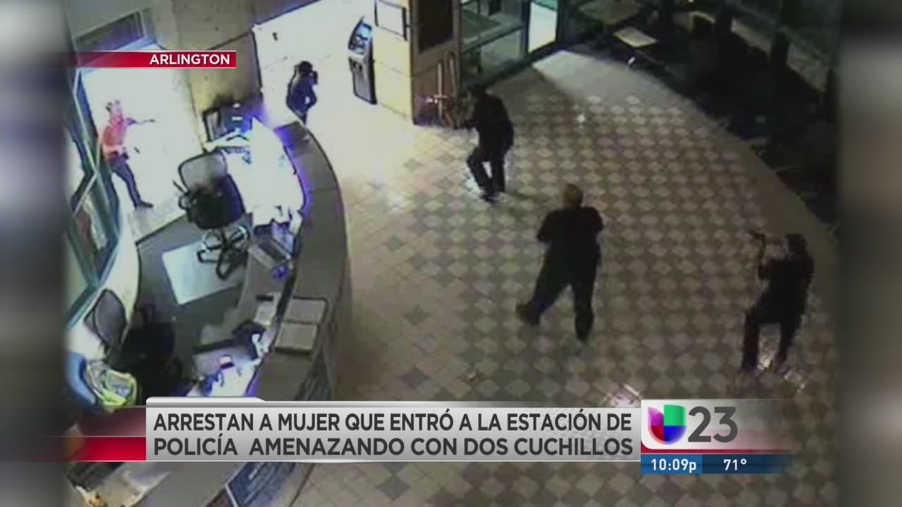 Una mujer entró a la estación de policía con dos cuchillos y empezó a amenazarlos. Rápidamente fue sometida con una pistola eléctrica
