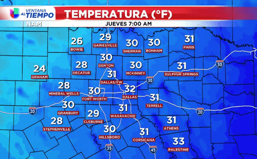 Temperaturas mínimas jueves en la mañana en el Metroplex