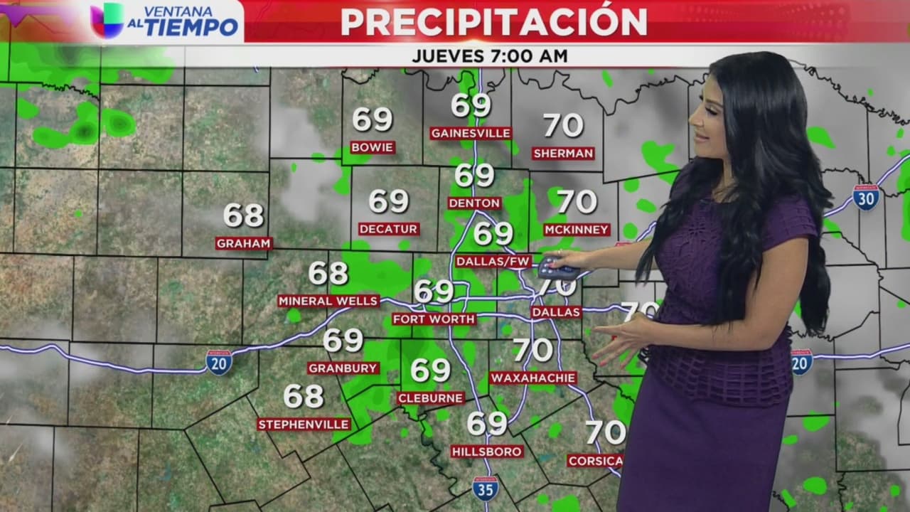 Las temperaturas en Dallas estarán por encima del promedio con máximas en los 86 grados Fahrenheit y mínimas en los 71 grados. Se espera que las condiciones meteorológicas se estabilicen para el viernes, cuando pase el frente que ha causado precipitaciones.