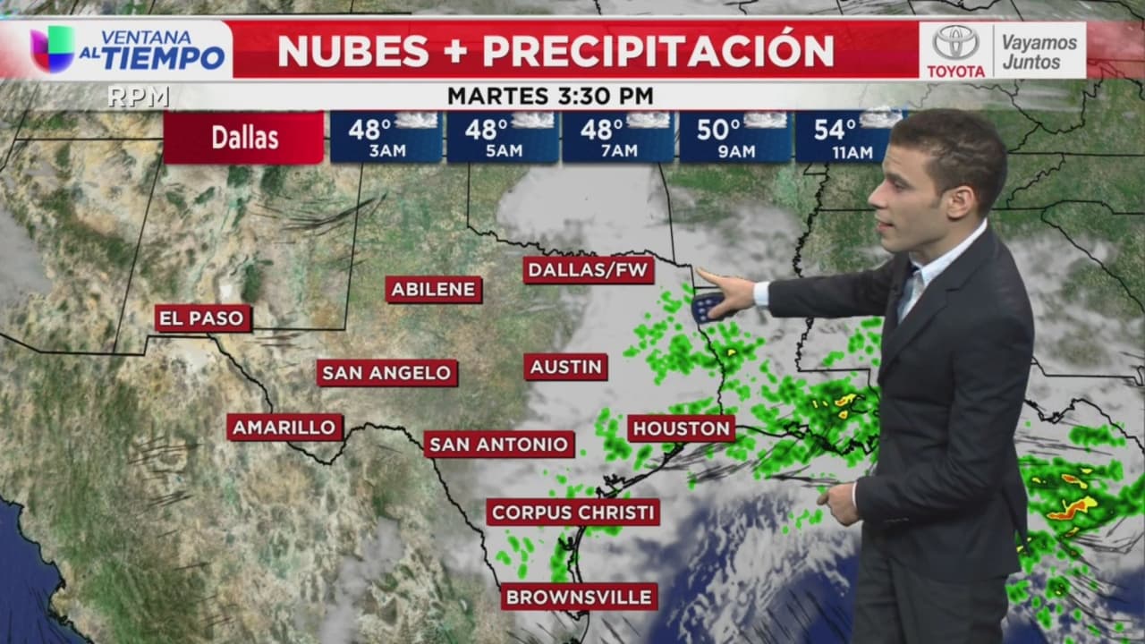 Las temperaturas en el Metroplex seguirán frescas con máximas en los 62 grados Fahrenheit y mínimas en los 45 grados. Los vientos estarán arrastrando humedad proveniente del Golfo de México.