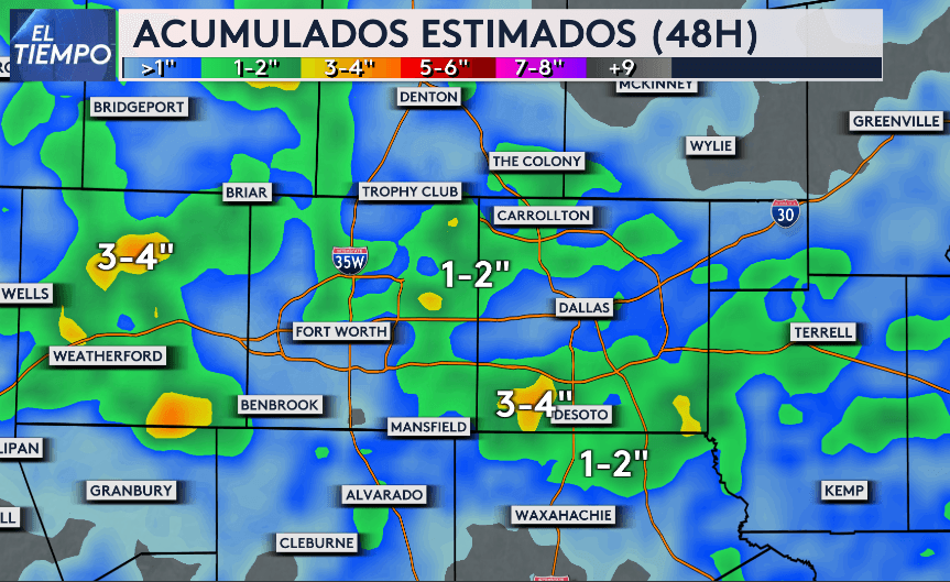 DALLAS, Texas. - El paso de un sistema frontal el domingo, generó aguaceros y algunas tormentas severas. Se reportaron granizos en ciudades como Bedford y Euless. Por otra parte, las lluvias fueron beneficiarias, algunos sectores sur del condado Dallas reportan acumulados entre 3-4 pulgadas de lluvias.